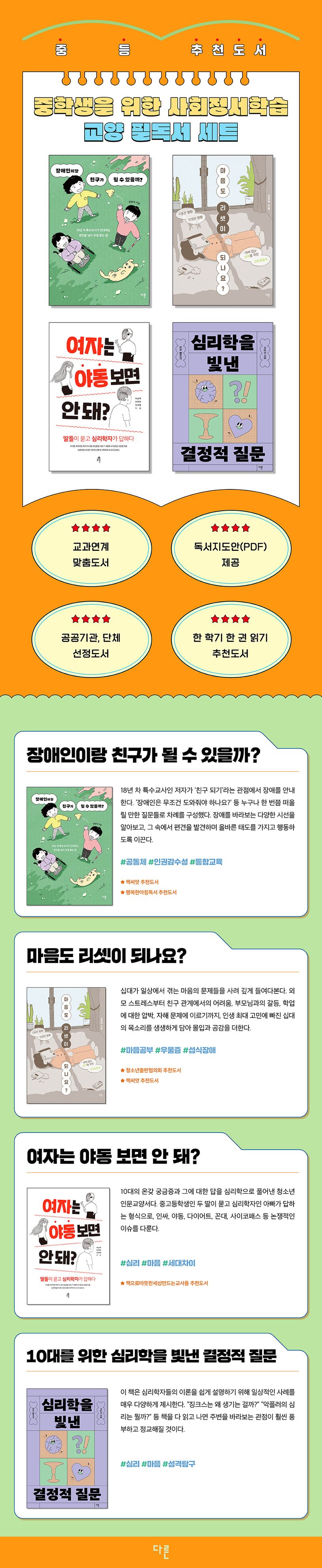 장애인이랑친구가될수있을까?마음도리셋이되나요?여자는야동보면안돼?10대를위한심리학을빛낸결정적질문