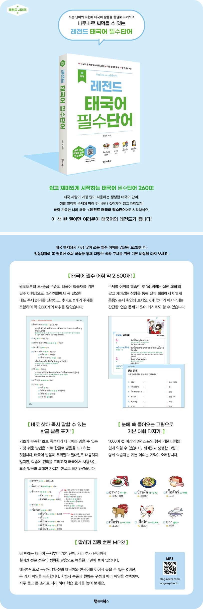 NEW 레전드 태국어 필수단어 (태국어 왕초보 필수 어휘 2600, 생활 밀착형 주제, 태·한 동시 녹음(MP3))