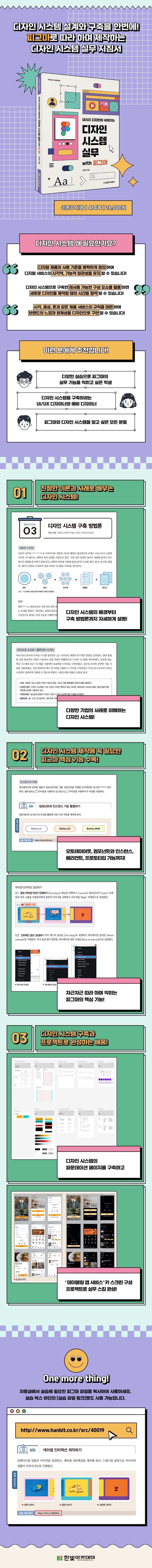 『UI/UX 디자인이 쉬워지는 디자인 시스템 실무 with 피그마』는 UI/UX 디자인 툴 피그마를 활용해 디자인 시스템을 구축할 수 있도록 안내하는 실습서입니다. 디자인 시스템의 설계부터 구축까지 UI/UX 디자인 툴인 피그마로 만들어 봅니다. 디자인 시스템 이론과 설계 방법을 자세히 설명하고 피그마의 기초 기능과 실습을 수록하여 피그마가 처음이어도 쉽게 배울 수 있습니다. 3부에서 진행하는 ‘테이블링 앱 서비스’의 키 스크린 구성 프로젝트까지 따라하다 보면 자연스럽게 디자인 시스템의 구조를 이해하고 피그마의 실무 기능을 학습할 수 있을 것입니다.