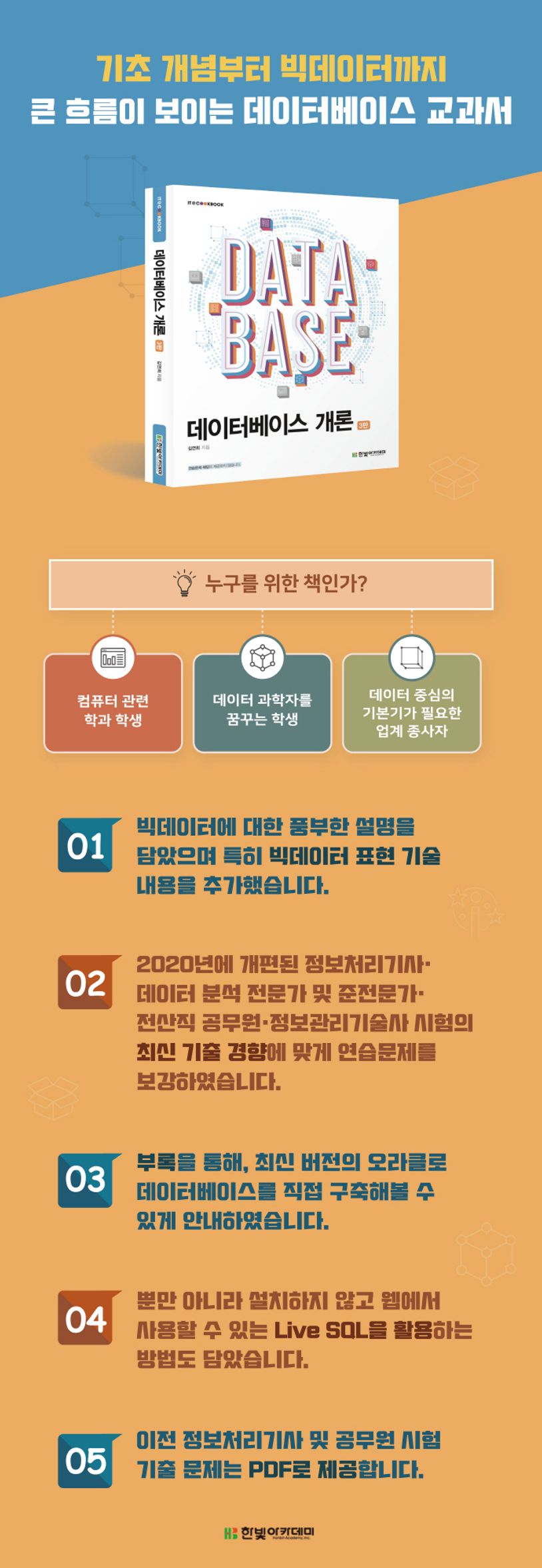 친근한 예와 비유를 들어 명료하게 풀어내, 데이터베이스 기본기를 탄탄히 다져줍니다.