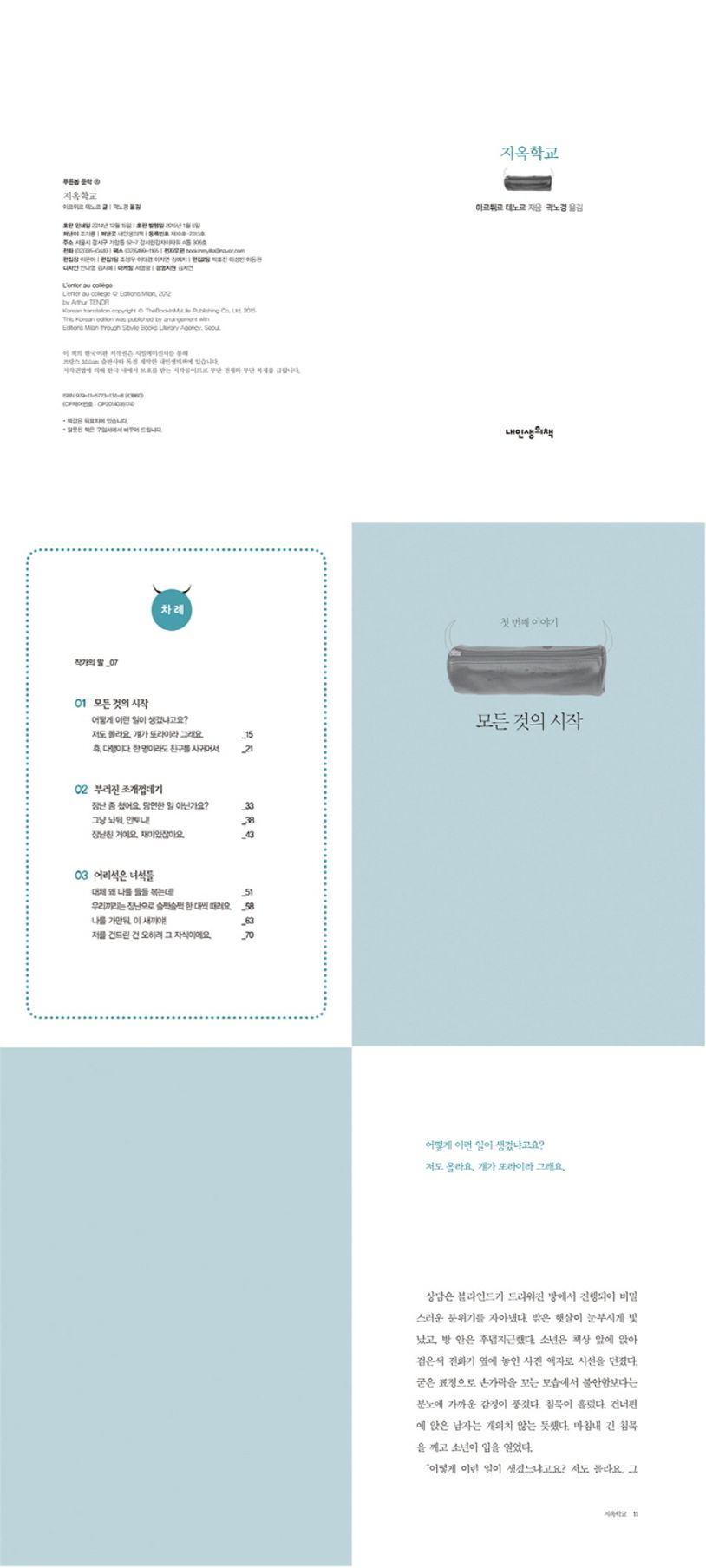 『지옥학교』는 소설 속 고통 받는 자, 가스파르는 그 극단적인 선택을 하고 만다. 말도 안 되는 용기를 쥐어짜서, 가장 잔인한 방법으로, 해서는 안 되는 방법으로 안토니에게 복수를 시도한다. 지긋지긋한 피해자의 신분에서 차라리 비열한 가해자가 되기를 자처한다. 하지만 그게 통하지 않는다. 그래서 가스파르는 마지막 선택을 한다. 그 결과가 어른들이 생각의 범위를 벗어날 만큼 심각하기에…… 작가는 어쩌면 학교의 폭력과 왕따라는 현실에 국한하지 않고 문제를 좀 더 근원적인 폭력이라는 문제로 대체한 게 아닐까 싶다.