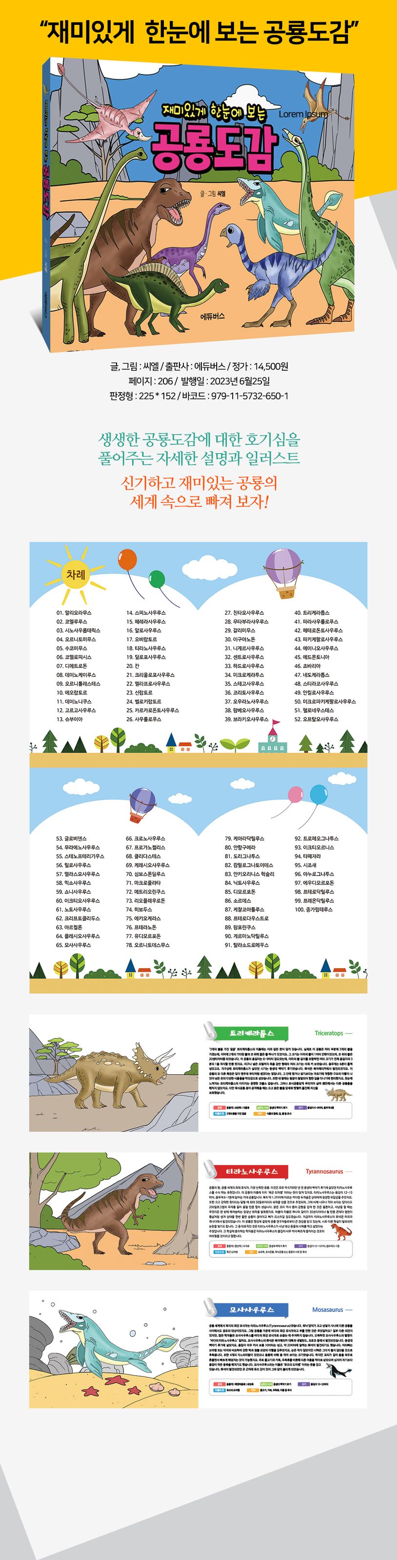01.알리오라무스02.코엘루루스03.시노사우롭테릭스04.오르니토미무스05.수코미무스06.코엘로피시스07.디메트로돈08.데이노케이루스09.오르니톨레스테스10.에오랍토르11.데이노니쿠스12.고르고사우루스13.슈부이아14.스피노사우루스15.헤레라사우루스16.알로사우루스17.오비랍토르18.티라노사우루스19.딜로포사우루스20.칸21.크리올로포사우루스22.엘라프로사우루스23.신랍토르24.벨로키랍토르25.카르카로돈토사우루스26.사우롤로푸스27.친타오사우루스28.무타부라사우루스29.갈리미무스30.이구아노돈31.니게르사우루스32.센트로사우루스33.하드로사우루스34.미크로케라투스35.스테고사우루스36.코리토사우루스37.오우라노사우루스38.람베오사우루스39.브라키오사우루스40.트리케라톱스41.파라사우롤로푸스42.헤테로돈토사우루스43.파키케팔로사우루스44.에이니오사우루스45.에드몬토니아46.조바리아47.네도케라톱스48.스티라코사우루스49.안킬로사우루스50.미크로파키케팔로사우루스51.펠로네우스테스52.오프탈모사우루스53.글로비덴스54.무라노사우루스55.스테노프테리기우스56.틸로사우루스57.엘라스모사우루스58.믹소사우루스59.쇼니사우루스60.이크티오사우루스61.노토사우루스62.크리프토클리두스63.아르켈론64.플레시오사우루스65.모사사우루스66.크로노사우루스67.프로가노켈리스68.클리다스테스69.케레시오사우루스70.심보스폰딜루스71.마크로플라타72.메트리오린쿠스73.리오플레우로돈74.히보두스75.에키오케라스76.프테라노돈77.유디모르포돈78.오르니토데스무스79.케아라닥틸루스80.안항구에라81.도리그나투스82.캄필로그나토이데스83.안키오리니스헉슬리84.닉토사우루스85.디모르포돈86.소르데스87.케찰코아틀루스88.프테로다우스트로89.람포린쿠스90.게르마노닥틸루스91.탈라소드로메우스92.트로페오그나투스93.이크티오르니스94.타페자라95.시조새96.아누로그나투스97.에우디모르포돈98.프테로닥틸루스99.프레온닥틸루스100.중가립테루스