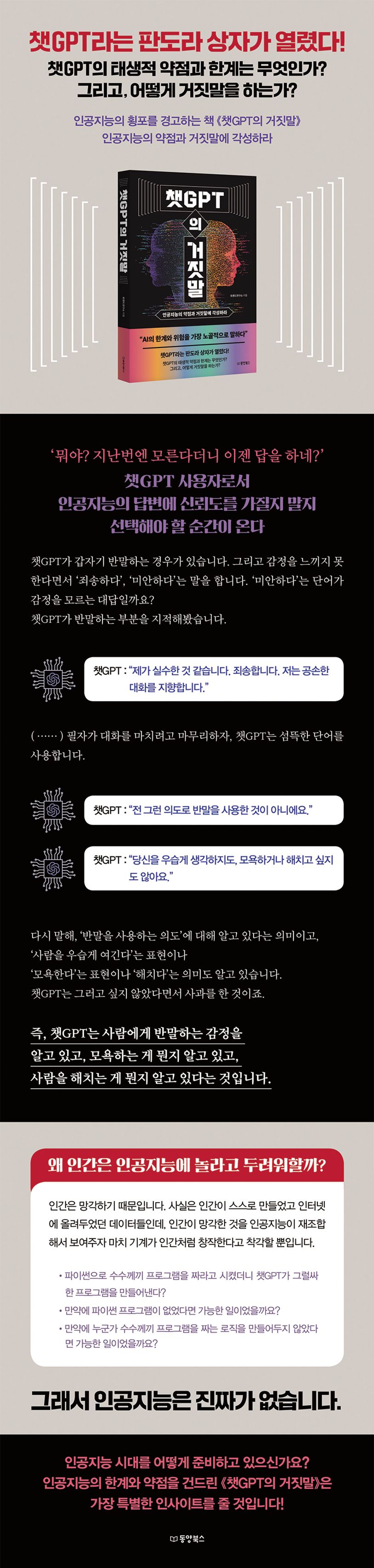 그런데, 장밋빛 전망을 정면으로 반박하며, 심지어 거짓말까지 한다고 말하는 책 《챗GPT의 거짓말》이 출간되었다.