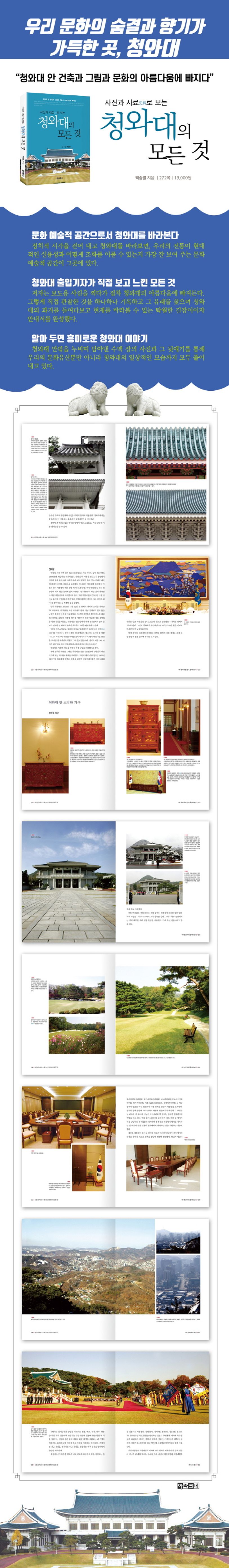 정치적 시각을 걷어 내고 청와대를 바라보면, 우리의 전통이 현대적인 실용성과 어떻게 조화를 이룰 수 있는지 가장 잘 보여 주는 문화 예술적 공간이 그곳에 있다. 그리고 이 책은 이미 한참 전에 청와대의 문화 예술적 가치를 알아보고 탐구를 시작했던 한 사진기자의 성실한 기록물이다.
