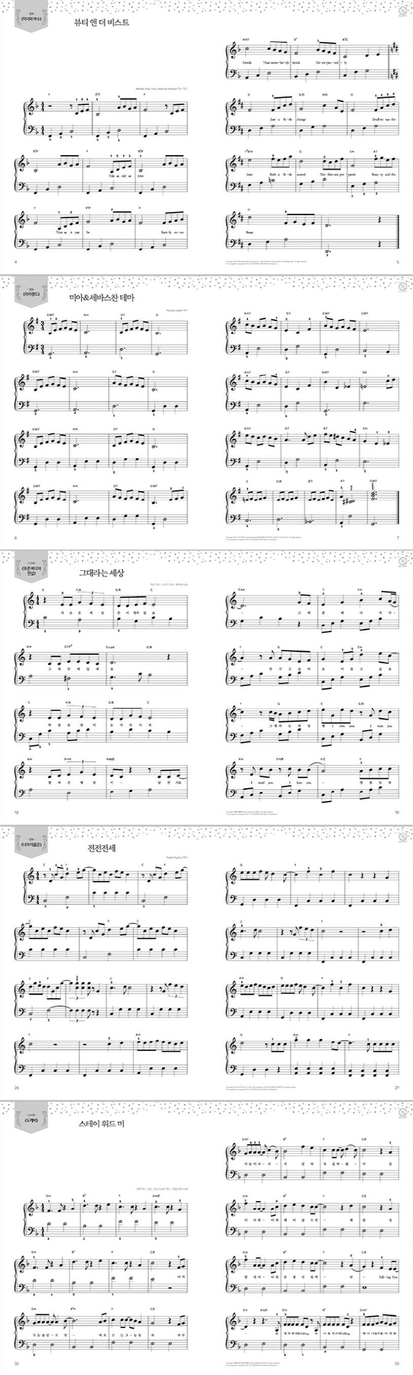 ‘라라랜드, 도깨비, 너의 이름은, 푸른 바다의 전설’에 수록된 인기 있는 OST 중 베스트 곡을 선별하여 어린이는 물론, 성인까지 쉽게 연주할 수 있도록 편곡한 피아노 연주곡집 『처음 만나는 OST 연주곡집: 이지 버전』입니다. 체르니 100번 이상의 수준이라면 원곡의 느낌을 최대한 살린 수록곡들을 감동적인 연주용 곡으로도 사용할 수 있도록 하였습니다.
