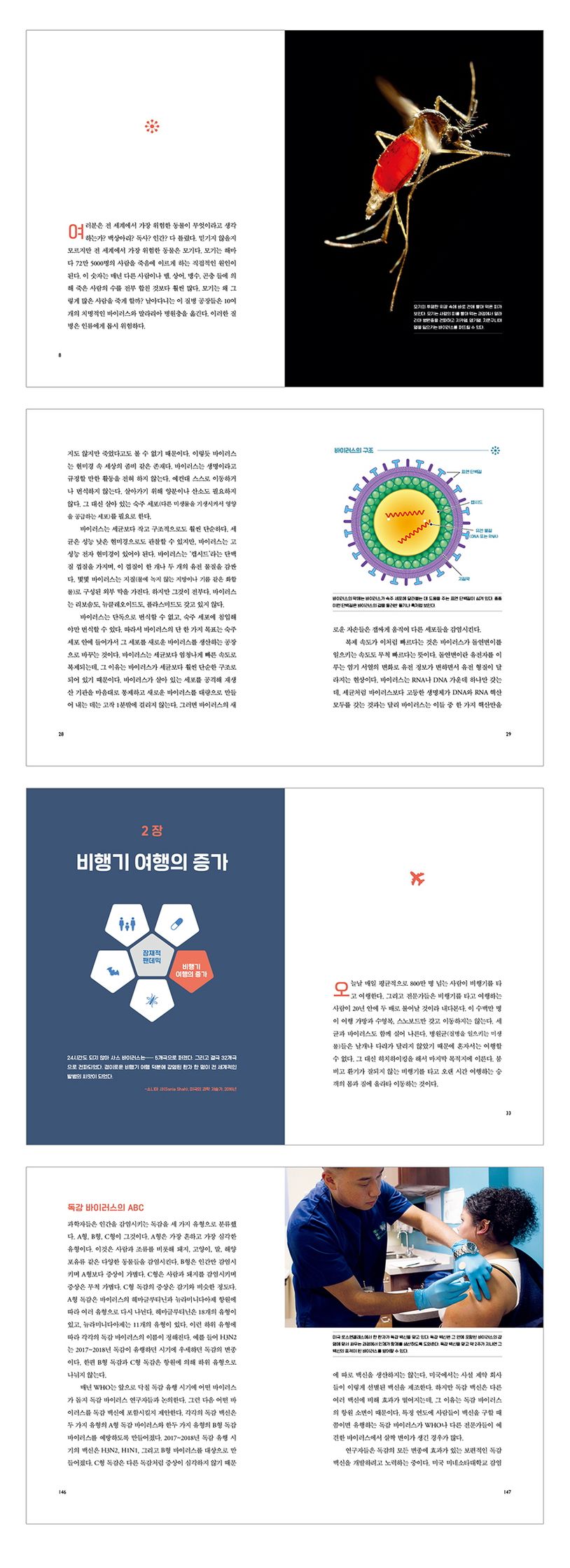 이 책은 코로나19가 나타나기 바로 전에 미국에서 출간된 청소년 교양서를 번역한 것이다. 대상 독자가 청소년인 만큼 팬데믹의 역사, 인류를 팬데믹으로 몰아넣는 위험 요인과 예방에 대하여 절제된 정보와 일목요연한 설명, 현장의 생동감 넘치는 사례와 인용으로 흥미롭게 다룬다.