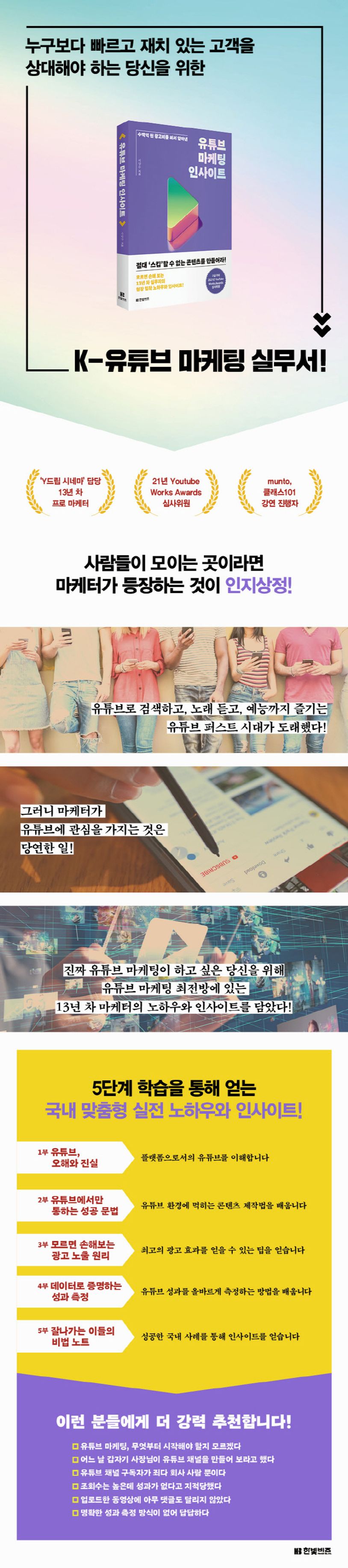 이 책을 읽고 나면 분명 당신도 광고 매체로서 유튜브를 활용할 수 있는 안목과 지식을 쌓고, 업무에 적용 가능한 인사이트를 얻을 수 있을 것이다.