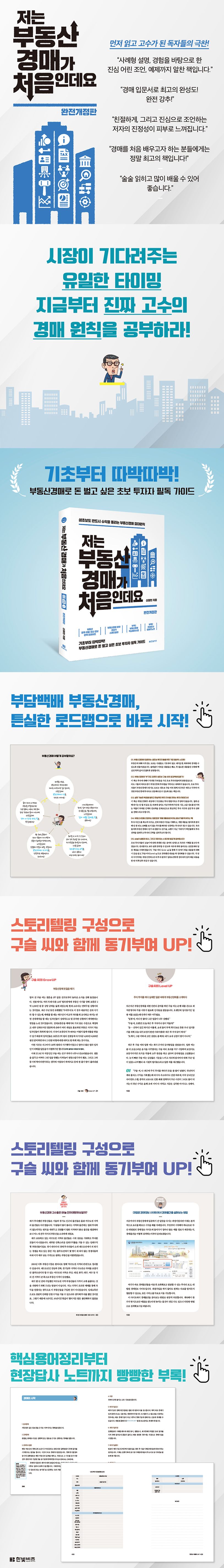 직장생활 3년차 구슬 씨의 좌충우돌 부동산경매 입문기로 10만 초보 부동산경매 투자자들을 고수의 길로 이끈 《저는 부동산경매가 처음인데요》가 완전개정판으로 돌아왔다. 단돈 700만 원으로 시작해 10여 년 만에 부동산 디벨로퍼로 대성공을 거둔 신정헌 대표의 부동산경매 노하우를 부동산의 ‘부’자도 모르던 생초보 구슬 씨의 공감백배 스토리로 알기 쉽게 풀어내며 초보 투자자를 위한 가장 친절한 부동산경매 입문서로 자리매김한 이 책이 최신 정보라는 날카로운 무기를 더해 더 강력해진 것이다.