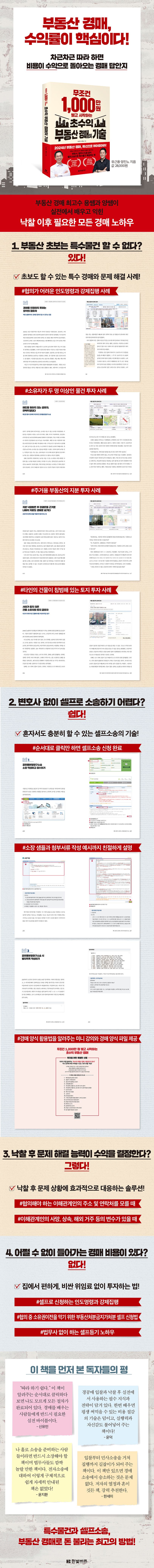 이 책은 초수익 경매 투자를 위한 공략집이다. 23건의 경매 사례를 통해 다양한 상황에서의 문제 해결 패턴을 배울 수 있을 뿐만 아니라 낙찰자로서 자신의 재산권을 지키기 위해 반드시 알아야 할 소송의 종류와 그 진행 방식을 파악할 수 있다. 이는 이해관계인들과의 협상에서 주도권을 쥘 수 있으며 협상력 또한 높일 수 있다는 뜻이다. 더 나아가 변호사나 법무사의 도움 없이 필요한 법적 절차를 스스로 능수능란하게 다룰 수 있는 셀프소송의 기술까지 다루고 있다. 이를 고수들이나 할 수 있는 일이라고 생각한다면 오산이다. 초보도 이 책만 있다면 충분히 할 수 있는 일이라는 것을 깨닫게 될 것이다. 부동산 경매는 더 이상 두려운 미지의 세계가 아닌, 법이 보장해주는 약속된 수익의 땅임을 확신할 수 있을 것이다.