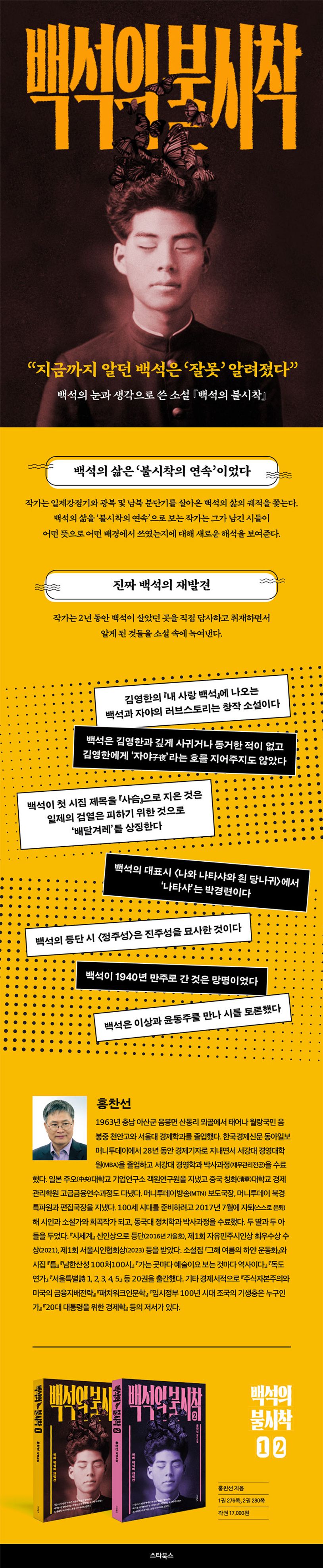 『백석의 불시착』은 한국 사람과 한국 시인이 가장 좋아하는 시인으로 신문기자 출신 시인인 홍찬선 작가가 백석의 꿈을 꾸고 2년 동안 백석이 살았던 곳을 직접 답사하면서 심혈을 기울여 쓴 다큐멘터리 장편소설이다. 따라서 이 책은 일제강점기와 광복 및 남북 분단기를 살아온 백석 시인의 삶을 불시착의 연속으로 보고, 그의 삶의 궤적을 쫓고 그가 남긴 시들이 어떤 배경에서 쓰였고, 어떤 뜻을 갖고 있는지에 대해 새로운 해석을 보여주고 있다.