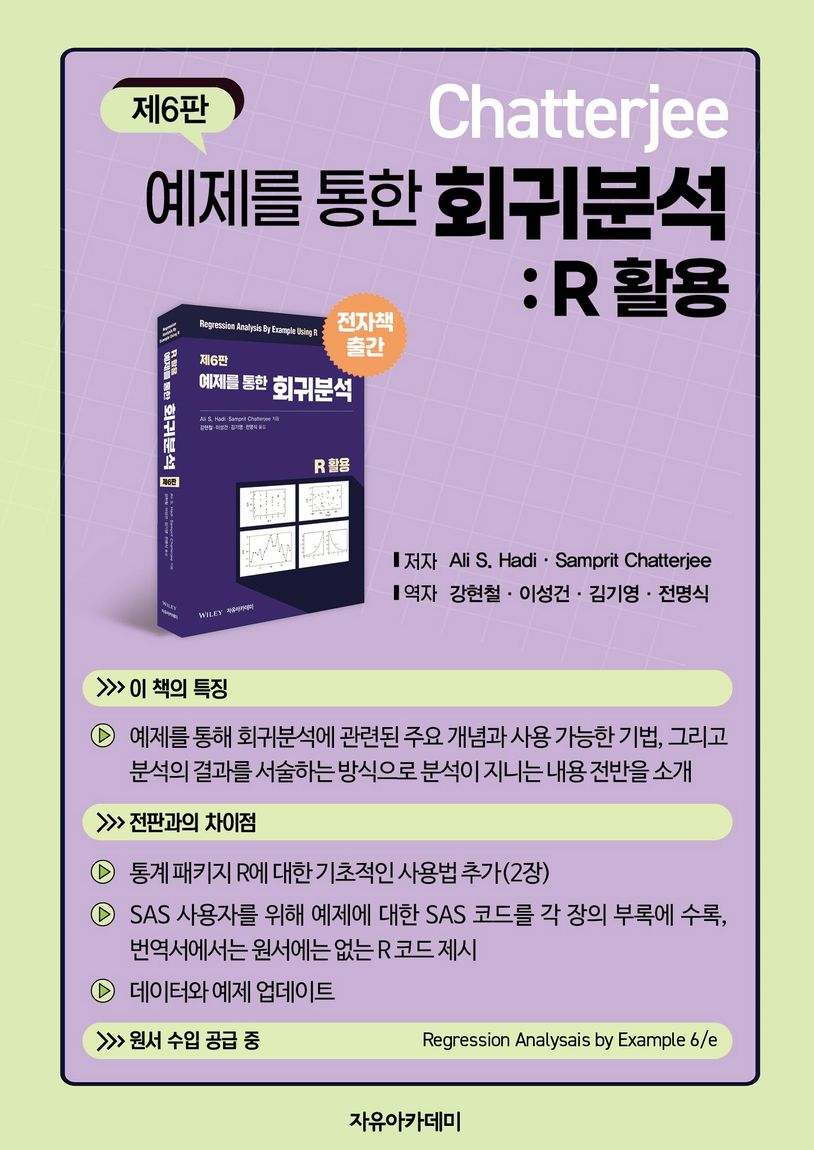 Chatterjee 예제를 통한 회귀분석: R 활용 (6 판)