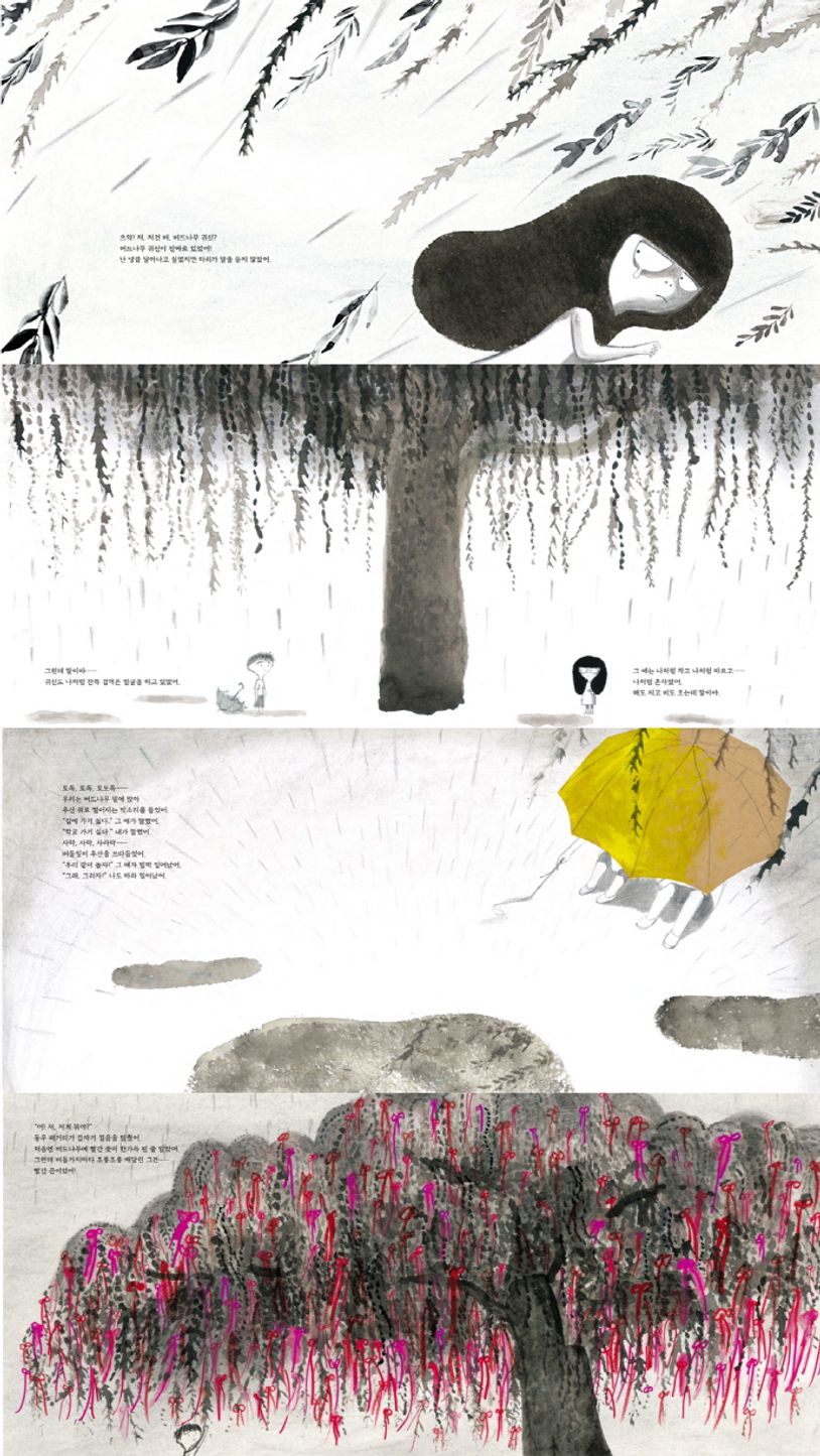 누구에게도 털어놓을 수 없는 마음을 가진 사람들을 따뜻하게 안아주는 그림책 『안녕, 외톨이』. 아이는 추적추적 내리는 빗속을 걸어 버드나무 공터로 갑니다. 귀신 따위 없다고 큰소리 쳤지만, 아이라고 귀신이 무섭지 않은 것은 아닙니다. 버들가지가 흐느적거리는 모습은 꼭 귀신 머리채 같고, 버들잎이 서걱거리는 소리는 꼭 칼 가는 소리 같습니다. 하지만 친구들에게 따돌림 당하는 것이 귀신보다 더 무섭기에 심호흡을 하고 한 발 한 발 버드나무로 다가갑니다. 그런데 긴 머리를 풀어헤치고 흑흑 흐느껴 우는 저건…… 진짜 버드나무 귀신?