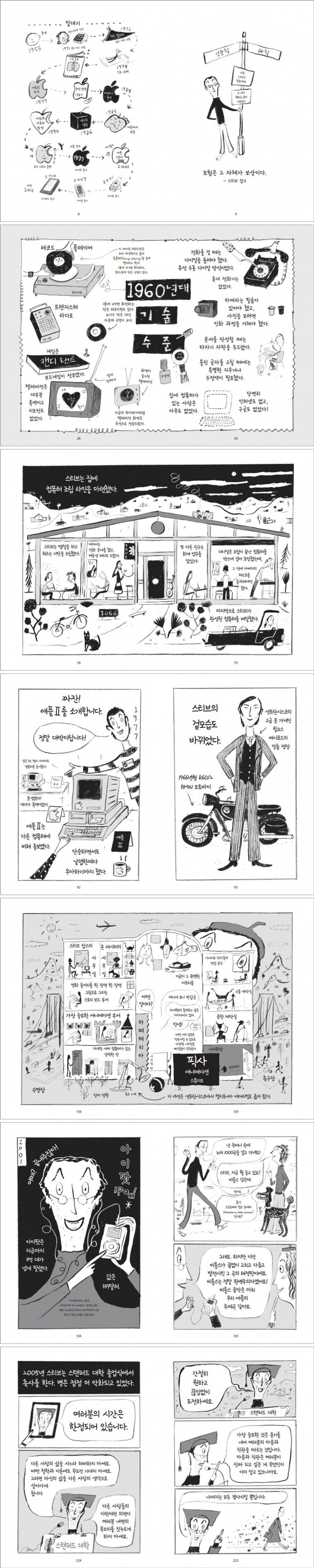 2011년 10월 5일, 우리에게 새로운 세상을 보여 준 ‘혁명의 아이콘’ 스티브 잡스가 56세의 나이로 세상을 떠났습니다. 개인용 컴퓨터 시대를 연 애플Ⅰ과 애플Ⅱ에서 휴대용 음악 재생기(MP3플레이어) 시장을 단숨에 사로잡은 아이팟, 휴대 전화에 컴퓨터 기능을 더한 아이폰과 멀티 터치 기능을 갖춘 휴대용 컴퓨터 아이패드까지……. 짧은 삶을 사는 동안, 스티브 잡스는 기술과 예술의 결합을 시도하며 새로운 문화를 선도해 왔습니다. 이제 우리 곁에 스티브 잡스는 없습니다. 하지만 잡스가 걸어온 길은 살아 있는 메시지가 되어 디지털 시대를 살아가는 어린이들에게 여전히 깊은 감동을 전합니다. 개성 있는 흑백 그림과 손글씨가 조화롭게 어우러진 이 책을 통해 스티브 잡스의 삶과 철학을 쉽고 재미있게 만나 보세요.