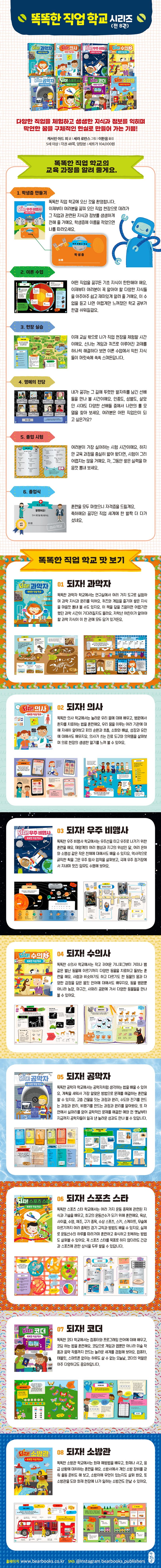 〈똑똑한 직업 학교〉 시리즈는 어린이를 꿈꿔 오던 직업 현장으로 데려가 그 직업과 관련된 지식과 정보를 생생하게 전해 주는 직업 안내서이자 교양서입니다. 전문 직업인들이 실제로 어떤 일을 하는지 어린이의 눈높이에 맞춰 보여 주면서, 어린이에게 꼭 필요한 지식만을 쏙쏙 골라내 재미있게 알려 주지요. 인체, 동식물, 자연환경, 날씨와 기후, 지구와 우주, 기계와 IT 기술에 이르기까지 말입니다.