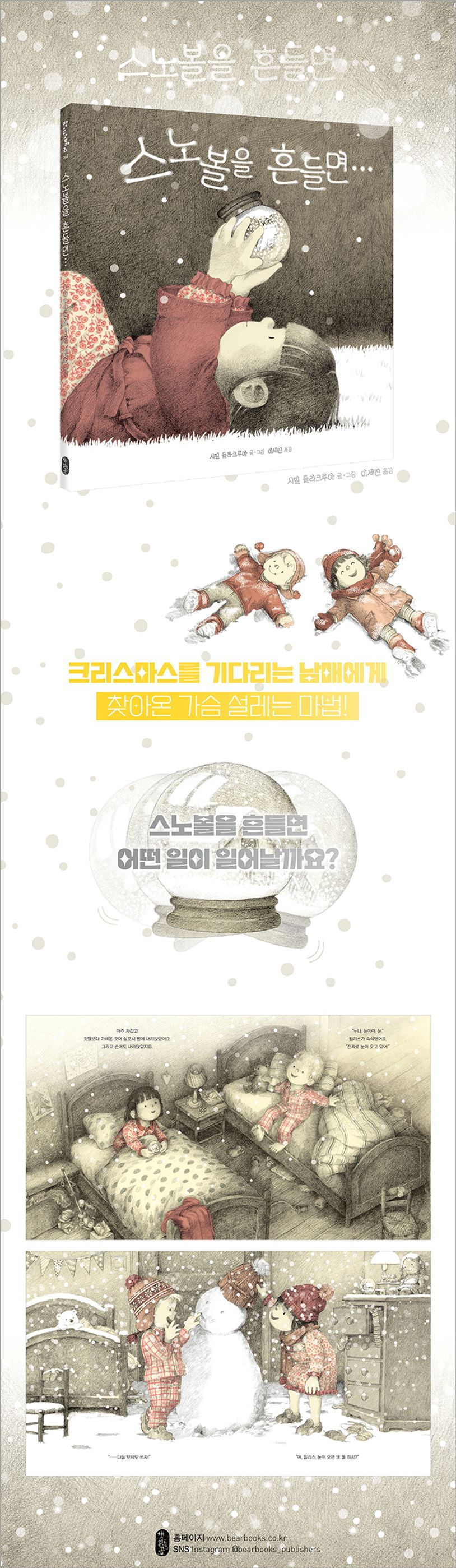 내일은 크리스마스. 뤼시와 윌리스 남매는 눈이 오기만 손꼽아 기다린다. 눈이 내리지 않으면 크리스마스의 마법도 일어나지 않을 것이기 때문이다. 하지만 아무리 기다려도 눈이 내릴 기미는 보이지 않는다. 잔뜩 실망한 뤼시에게 아이슬란드에 사는 대모님이 보낸 선물이 도착한다. 뤼시와 윌리스의 집을 꼭 닮은 스노볼이다. 좀처럼 잠이 오지 않는 밤, 뤼시가 살며시 스노볼을 흔들자 크리스마스의 마법이 남매를 찾아온다.