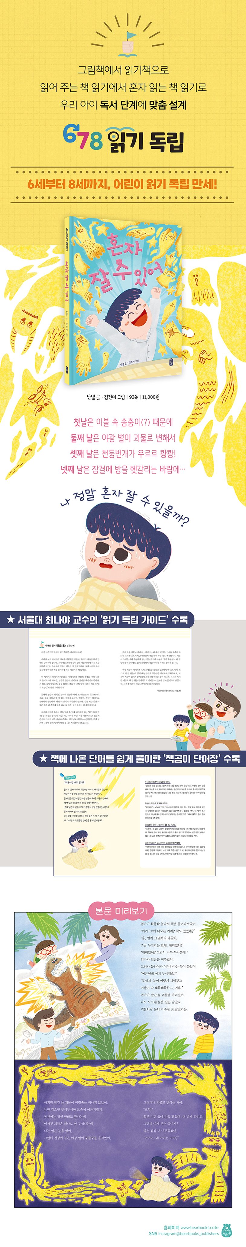 어린이의 읽기 독립을 돕는 ‘678 읽기 독립’ 시리즈 세 번째 책. 친구들이 모두 혼자 잔다고 하자, 율이는 지기 싫은 마음에 작년부터 혼자 잤다고 거짓말한다. 그날부터 율이는 진짜 ‘혼자 자기’에 도전한다. 첫날은 낮에 본 송충이가 몸에 붙어 온 것 같아서, 둘째 날은 캄캄한 방에 붙인 야광 별이 괴물처럼 보여서, 셋째 날은 천둥번개가 무서워서, 넷째 날엔 잠결에 실수로 실패하고 만다. 정말 혼자 자기에 성공할 수 있을지, 율이는 점점 자신이 없어지는데……. 도전하는 어린이들을 힘껏 응원하는 책.