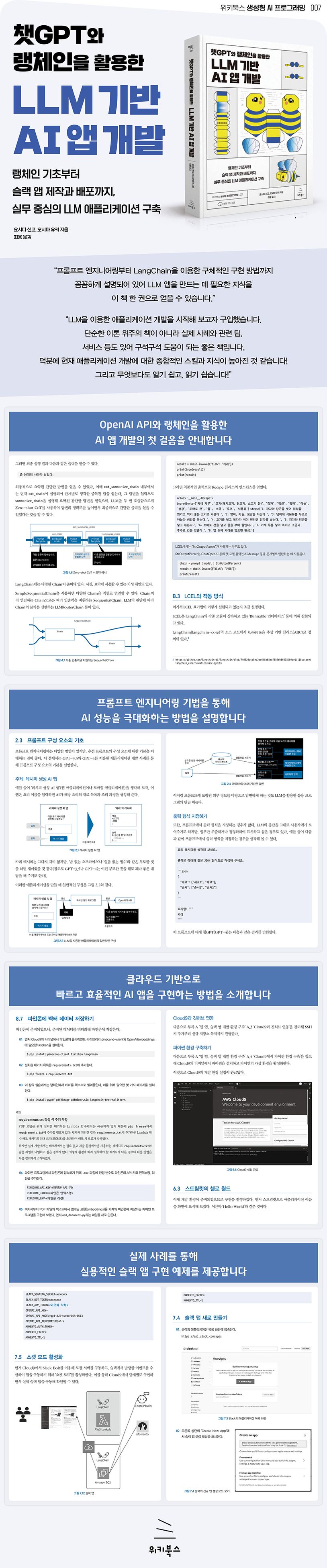 챗GPT와 랭체인을 활용한 LLM 기반 AI 앱 개발 (랭체인 기초부터 슬랙 앱 제작과 배포까지, 실무 중심의 LLM 애플리케이션 구축)