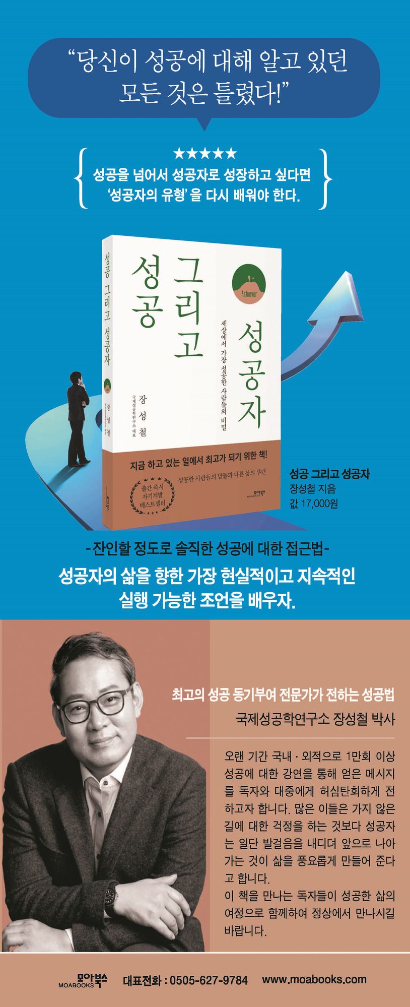 그리고 현대인이 알아야 할 성공의 새로운 의미를 총망라하여 누구나 쉽게 이해하고 막연하고 거창한 성공이 아닌 자신의 일상에서 실천하고 행동할 수 있는 방법을 알아야 한다. 지금 무슨 일을 하든, 미래의 어느 곳을 바라보고 있든, 이 책에서 보여주는 성공의 길에서 자기만의 성공의 의미를 찾을 수 있는 든든한 동반자가 되어야 한다.