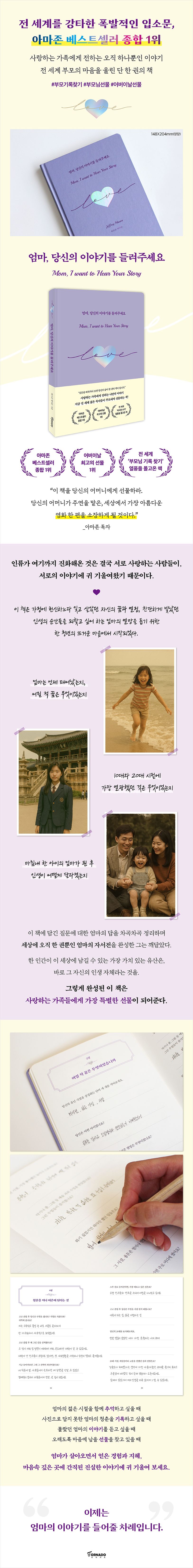 이 책은 엄마로 헌신하느라 잊고 살았던 자신의 꿈과 열정, 찬란하게 빛났던 인생의 순간들을 되찾고 싶어 하는 여성 독자들의 열망을 돕는다. 2018년 전 세계 남성 독자들 사이에서 ‘자서전 쓰기’ 열풍을 일으켰던 《아빠, 당신의 이야기를 들려주세요》와 함께 나란히 2025년 아마존 종합 베스트셀러 1위에 오른 이 책은 ‘어버이날 젊은 독자들이 부모에게 가장 많이 선물하는 기프트북’의 상징이 되었다.