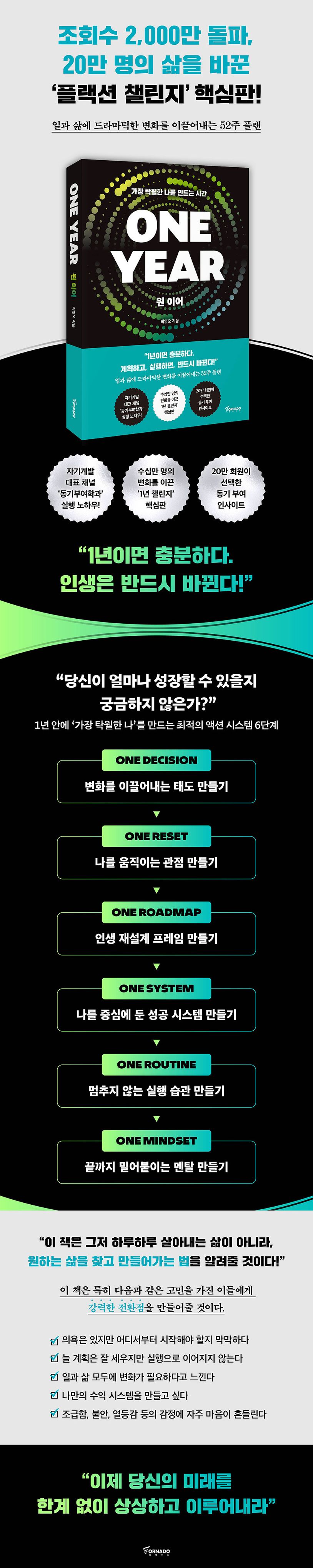 《ONEYEAR원이어》는단순히하나의목표를이루는기술이아니라,삶의방향을재설계하고그에맞는새로운일과행동을시작하여그것을루틴화하는과정을통해근본적인변화로나아가는여정을안내한다.저자는독자에게“당신은지금누구의인생을살고있는가?”라고묻는다.그리고타인의기준,사회의기대,부모의바람으로점철된삶이아닌‘온전히나다운삶’을찾을수있는방법을하나씩안내한다.그렇게삶의중심을바깥이아닌내면으로되돌려놓을때,비로소우리는흔들리지않는기준을갖게되고,어떤환경에서도동기와추진력을잃지않게된다.