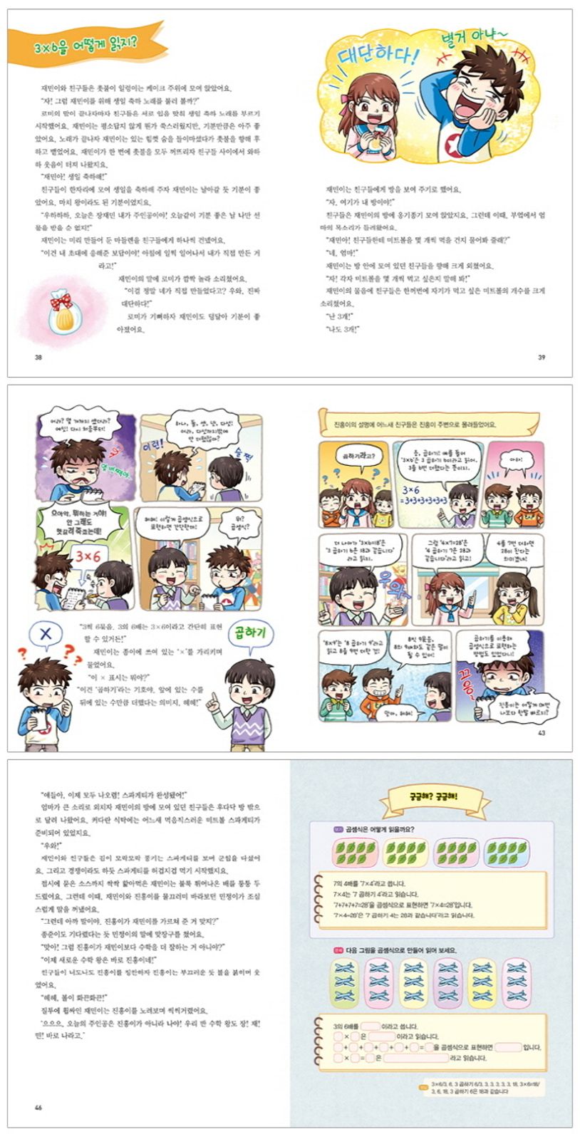 병아리 도서관 「수학 시험 100점 비법」 시리즈 네 번째 이야기 《곱셈구구가 이렇게 쉬웠다니!》에서는 곱셈구구를 외우기 시작한 아이에게 곱셈구구의 원리인 묶어 세기부터 배의 의미, 곱셈을 덧셈식으로 표현하는 방법, 곱셈구구를 쉽게 외우는 방법 등 원리부터 차근차근 설명하고 있어 아이가 곱셈구구를 이해하고 재미있게 외울 수 있습니다.