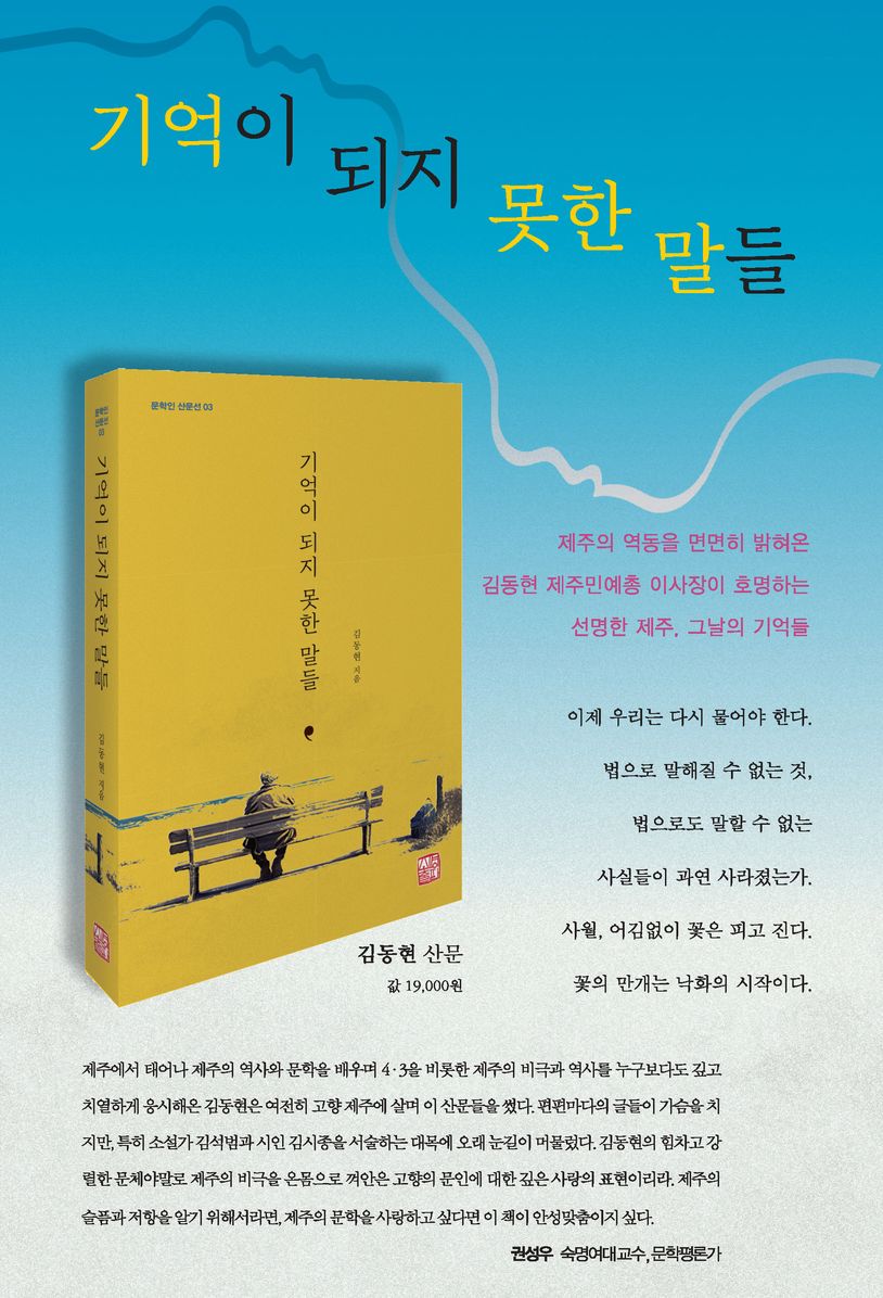 『기억이 되지 못한 말들』은 우리에게 너무나 익숙한 제주도의 숨겨진 이야기들을 보여준다. 책의 제목부터 깊은 여운을 남긴다. ‘기억이 되지 못한 말들’, 저자는 이렇게 말한다. “제주의 사월은 증언될 수 없는 목소리, 보이지 않는 존재들을 바라보는 것에서부터 출발하였다. 침묵의 외부에 존재하는 사실들을 들여다보았던 수많은 작업들은 그것이 대한민국이 기억하지 않는 기억들을 만나는 일이었다. 국가는 기억하지 않지만 제주 사람들은 선명하게 기억하는 수많은 일들. 오랜 시간이 지난 뒤에야 수많은 죽음들을 말할 수 있었던 것도 바로 이러한 노력 때문이었다”고 저자는 고향 제주에 살며 제주의 역사와 비극을 온몸으로 받아들였다.
