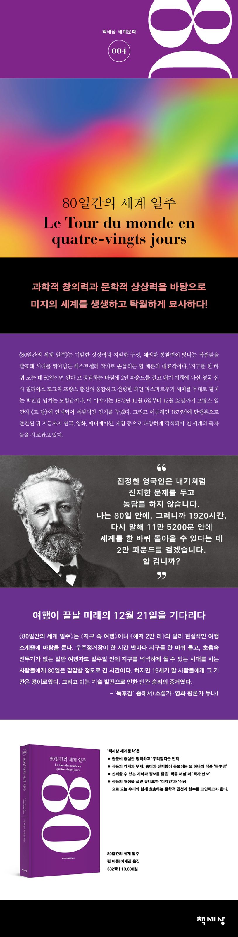 매력적인 주인공 필리어스 포그와 개성이 뚜렷한 등장인물들이 세계 일주를 하는 80일 동안, 아마 독자들도 아슬아슬한 긴장감을 유지하며 책 읽는 재미에 흠뻑 빠져들 것이다.