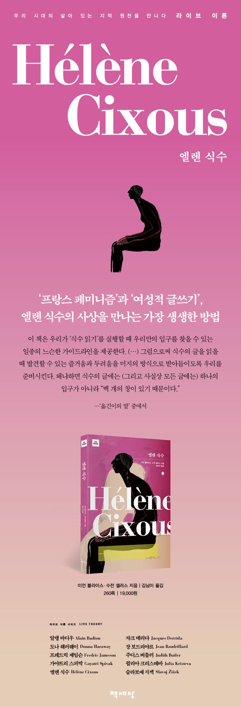 이에 도서출판 책세상은 블룸스베리(Bloomsbury) 출판사에서 펴낸 ‘라이브 이론(Live Theory)’ 시리즈를 번역 출간한다. 동시대 주요 이론가들의 삶과 지적 활동, 나아가 생생한 인터뷰를 적정한 분량에 담은 이 시리즈는 이들의 문제의식을 간파하고 이들의 사유가 그려온 궤적을 조망할 수 있게 해줄 것이다.