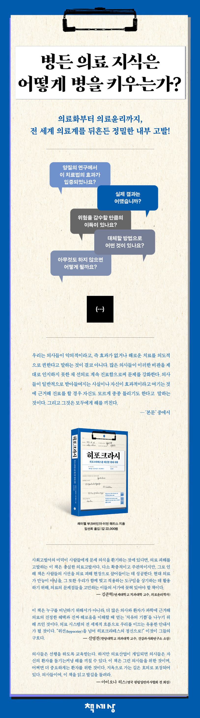 의학은 과학이다. 그렇다면 현대 의학은 당연히 현대 과학…이 맞을까? 두 저자 레이첼 부크바인더와 이언 해리스는 이 책에서 과학적 근거에 기반하지 않는 현대 의학의 문제점들을 철저하게 고발한다. 출간 즉시 의료계에 큰 화제가 됐던 이 책은 호주 및 전 세계 의료계에서 존경받는 두 의사가 쓴 것이다. 이 책은 철저하게 과학적으로 증명된 것을 근거로 삼는 ‘증거 기반 의학’을 토대로, 최신 연구를 받아들이지 못하고 관행에 따르는 의료계를 비판한다. 이 책은 널리 알려진 의학적 오해와 과거의 시행착오부터 최신 연구 결과에 이르기까지 의료의 역사를 아우른다.