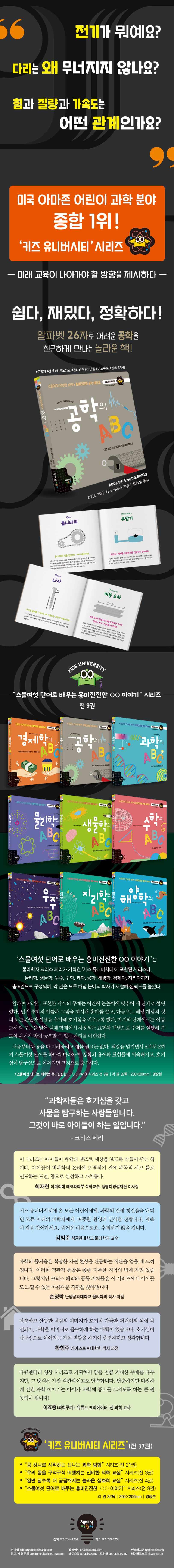 ‘스물여섯 단어로 배우는 흥미진진한 OO 이야기’ 시리즈는 물리학자 크리스 페리가 기획한 ‘키즈 유니버시티’에 포함된 시리즈다. 물리학, 생물학, 우주, 수학, 과학, 공학, 해양학, 경제학, 지리학까지 총 9권으로 구성되며, 각 권은 모두 해당 분야의 박사가 저술해 신뢰도를 높였다.