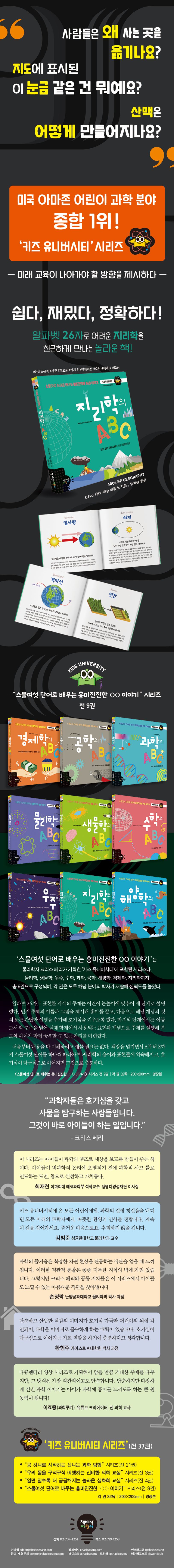 ‘스물여섯 단어로 배우는 흥미진진한 OO 이야기’는 물리학자 크리스 페리가 기획한 ‘키즈 유니버시티’에 포함된 시리즈다. 물리학, 생물학, 우주, 수학, 과학, 공학, 해양학, 경제학, 지리학까지 총 9권으로 구성되며, 각 권은 모두 해당 분야의 박사가 저술해 신뢰도를 높였다.