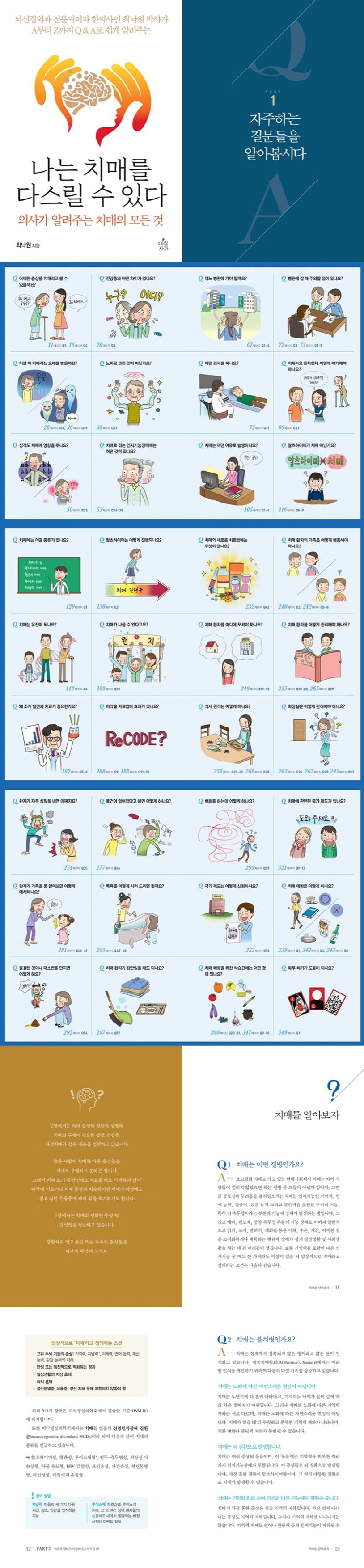 이 책은 치매에 대한 전문적인 지식을 누구나 쉽게 다가갈 수 있도록 돕기 위해 기획되었다. 치매를 다들 절망의 병으로 치부하는데, 그렇게 하기에는 의학 기술이 비약적으로 발전하고 있기에 극단적으로 절망의 병으로 여기면 안 된다. ‘지피지 기면 백전백승이다’라는 문구를 치매에 관련된 사람이라면 늘 마음에 새기고 있어야 하는 병이 바로 치매다. 전작 ‘치매의 모든 것’에서 치매라는 병에 대해서 전문 의학적 지식 위주로의 설명이 있었다면, 이번에 출판되는 본서는 인지장애 및 치매 환자들을 돌보고 치료하고 있는 치매 관련 전문가 및 치매환자와 가족들, 그리고 치매 기관 종사자분들, 아울러 평소 치매에 두려움을 갖고 있는 여러 사람들이 가장 궁금해하는 치매와 관련된 궁금한 질문들을 도출하여 Q & A 형식으로 많은 사람들이 쉽게 보고 이해할 수 있도록 서술된 안내서이자 지침서이다.