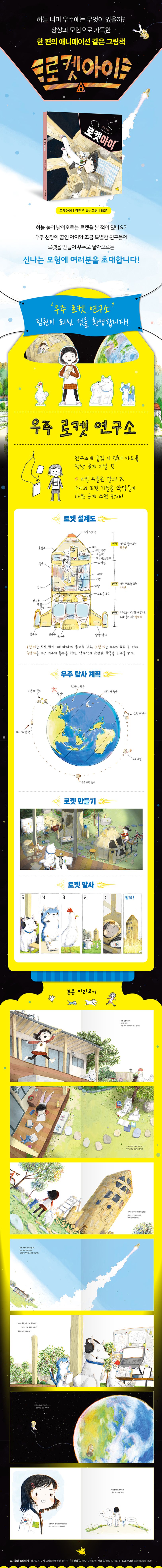 《로켓아이》는 로켓을 좋아하고, 우주여행을 꿈꾸는 아이들에게 특별한 모험을 선물하는 그림책입니다. 우주 선장이 꿈인 ‘로켓아이’는 특별한 친구들과 함께 ‘우주 로켓 프로젝트’를 준비합니다. 직접 로켓을 만든 다음 우주로 날아가 지구를 한 바퀴 도는 계획이에요. 우주 선장과 팀원들의 프로젝트는 과연 성공했을까요? 로켓 개발부터 우주 탐사까지, 《로켓아이》에는 ‘우주 미션’의 모든 것이 담겨 있습니다.