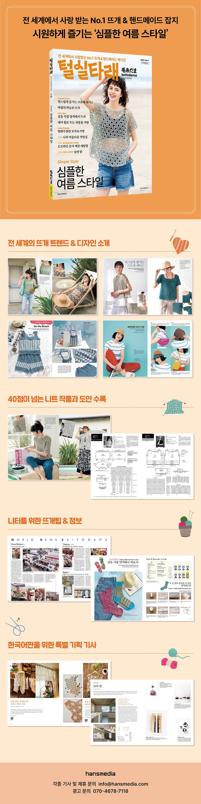 〈털실타래〉는 현재 전 세계에서 큰 사랑을 받고 있는 최고의 뜨개 & 핸드메이드 잡지입니다. 뜨개 전문기업 일본보그사에서 매 계절(봄, 여름, 가을, 겨울)마다 발간해온 수예 전문지로, 2022년 가을호부터 한국어판이 공식 출간되었습니다. 이번에 출간되는 〈털실타래 Vol.4〉의 주제는 시원하게 입기 좋은 ‘심플한 여름 스타일’로, 여름을 위한 옷과 패션 아이템을 소개합니다.