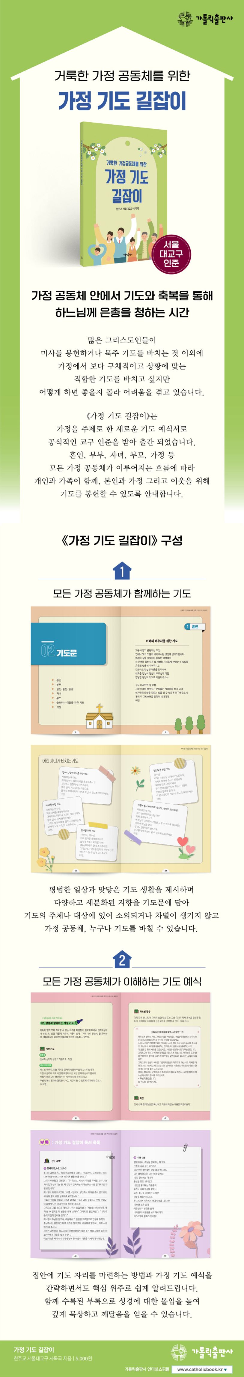 《가정 기도 길잡이》는 혼인 준비부터 부부로서 새로운 삶을 살아가는 모든 과정, 그리고 잉태의 순간부터 지상 생활을 마치는 일생의 모든 순간이 하느님 안에서, 하느님과 함께 살아가는 삶임을 기억하고 봉헌하는 데에 도움이 되고자 출간되었다.