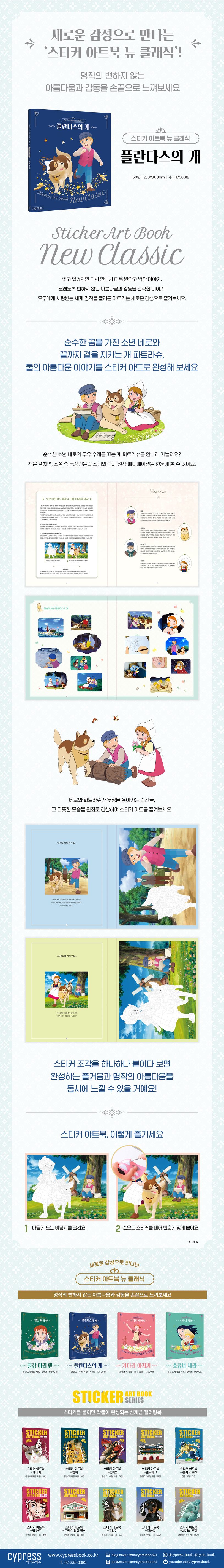 ‘스티커 아트북 뉴 클래식’! 새로운 감성의 스티커 아트북이 출간되었다. 잊고 있었지만 다시 만나서 더욱 반갑고 벅찬 이야기, 오래도록 변하지 않는 아름다움과 감동을 간직한 이야기. ‘스티커 아트북 뉴 클래식’은 모두에게 사랑받는 세계 명작을 폴리곤 아트라는 현대적인 감각으로 재탄생시킨 시리즈다. 두 번째로 선보이는 타이틀은 슬프지만 아름다운 결말이 인상적인 『플란다스의 개』이다.