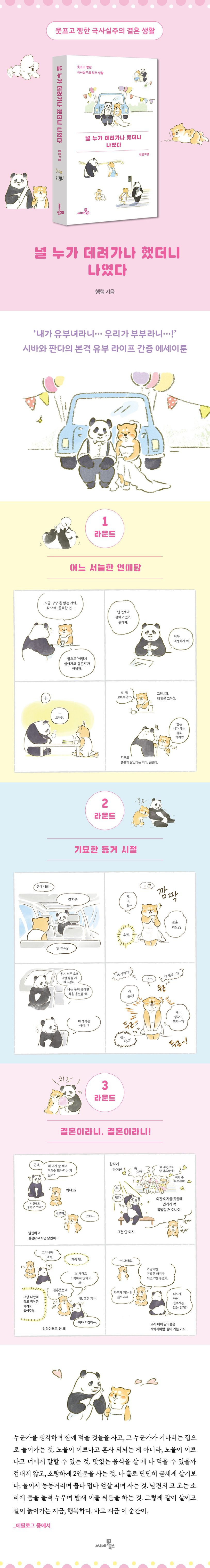 세모 눈썹과 찹쌀떡 같은 볼살을 가진 시바견 캐릭터로 사랑받는 햄햄 작가의 연애, 동거, 결혼 이야기가 담긴 에세이툰이 출간됐다. 연애와 결혼 사이 과도기에 진입한 커플, 결혼적령기 증후군에 시달리는 모든 이의 감성을 제대로 저격하는 이 책은 『널 누가 데려가나 했더니 나였다』라는 제목처럼 위트 넘치고 솔직한 감성으로 독자에게 다가간다. 먼지같이 가벼운 이야기부터 지극히 현실적인 이야기까지, 피식 웃음이 나오면서도 공감하고 위로받으며 생각할 거리가 가득한 ‘진짜’ 이야기가 가득 담겼다.