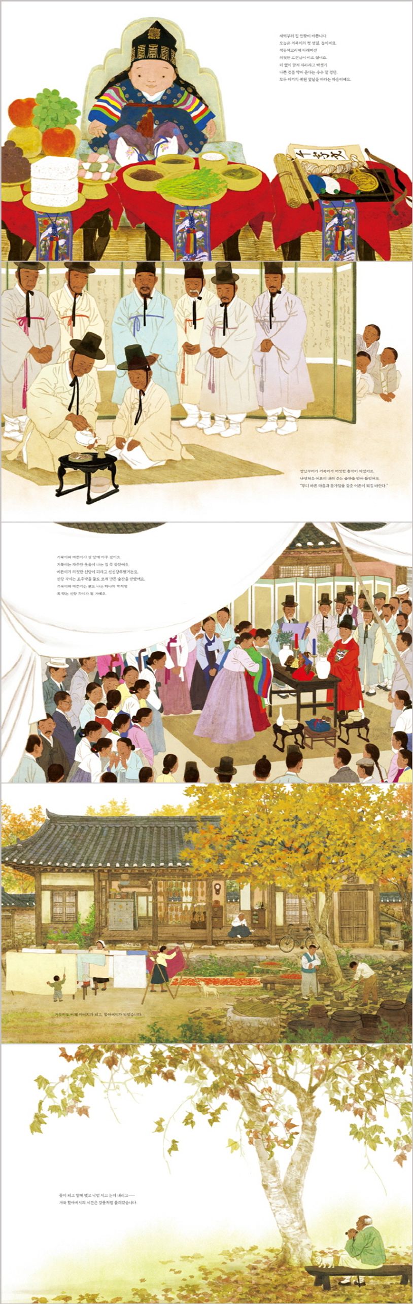 『마음을 담은 상차림』은 한 사람의 일생을 한 축으로 하여 흘러갑니다. 그리고 그 속에서 중요한 순간마다 그 때를 기념하고 기리는 마음으로 차린 상들을 소개합니다. 태어난 아이를 위한 삼신상부터 세상을 떠나는 이를 배웅하는 사잣밥과 돌아가신 분을 기리는 제사상까지 말이죠. 하지만 일생에 단 한 번뿐인 순간들을 위한 상차림만 등장하는 것은 아닙니다. 이 이야기 속에는 책을 다 학습하고 받는 책거리 상이나 매일 저녁 어머니가 차려 주시는 소담한 저녁상도 담겨있습니다. 매일 받는 소담한 밥상부터 기념일에 받는 특별한 상차림까지. 모든 상차림에는 누군가를 향한 마음과 정성이 담겨 있기 때문입니다. 이 책은 통과의례에 관한 이야기이자 따뜻한 밥상에 담긴 마음 덕분에 삶의 굽이굽이를 무사히 넘기는 우리 모두의 이야기입니다.