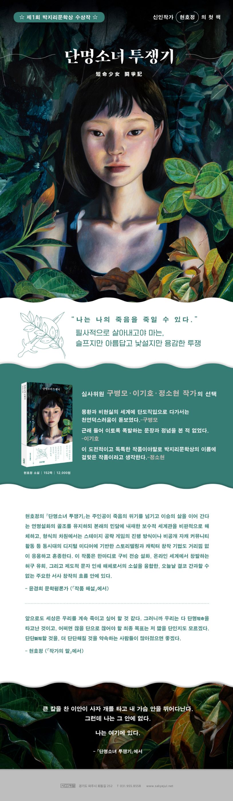 단명소녀 투쟁기 (제1회 박지리문학상 수상작 | 현호정 소설 | 양장본 Hardcover)