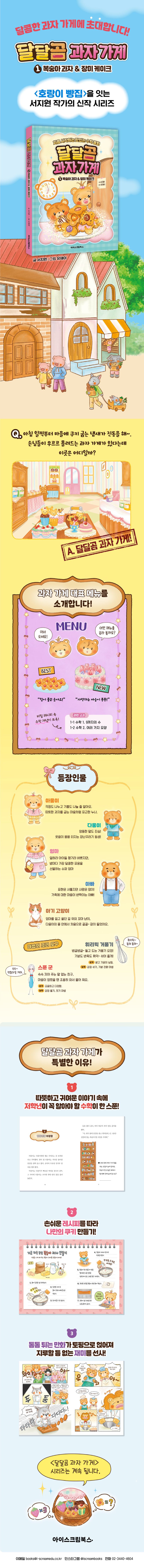 〈달달곰 과자 가게 1〉은 쌍둥이 곰 남매 아웅이 다웅이가 빵과 과자 만드는 이야기를 통해 초등 수학의 여러 개념과 성질을 쉽고 편하게 익히도록 구성한 책입니다. 그동안 수학은 공식을 외우거나 딱딱하고 어렵다는 편견이 많았습니다. 이 책은 누구나 흥미로운 이야기 속에서 수학의 핵심 개념을 단계적으로 이해할 수 있게 도와줍니다. 이야기를 읽고 사고하는 과정을 통해 수학의 개념을 연관 지을 수 있으며, 구조화할 수 있을 것입니다. 책속에 나오는 복숭아 과자와 장미 케이크는 어떤 비밀 레시피로 만들어졌을까요? 그 속에는 어떤 수학 개념이 담겨 있을까요? 지금 바로, 달달곰 과자 가게에 친구들을 초대합니다.