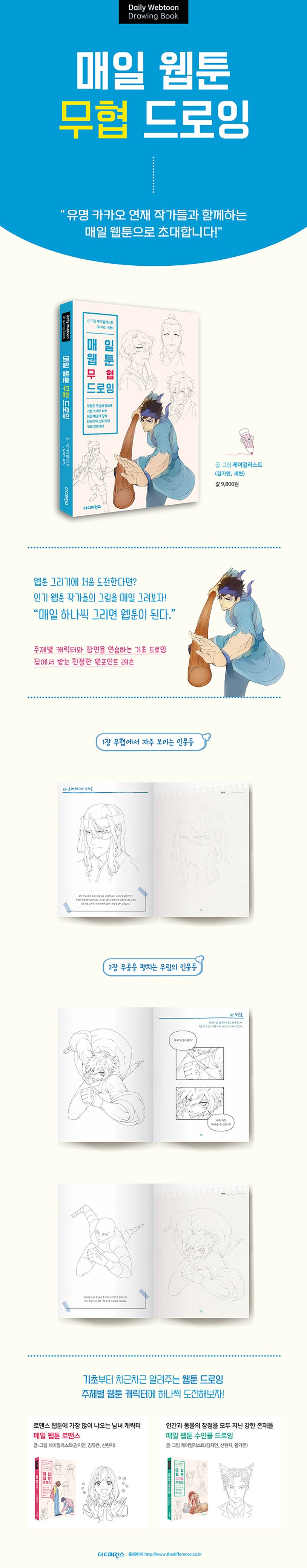〈매일 웹툰 무협 드로잉〉은 현재 카카오 등에서 연재하는 현업 웹툰 작가들이 인기 웹툰의 캐릭터 스타일과 다양한 사건, 상황을 분석하여 웹툰 작가를 꿈꾸는 예비 작가들이 언제 어디에서나 쉽고 간편하게 연습할 수 있도록 총 58개의 무협 캐릭터를 넣어 구성한 드로잉 책이다.