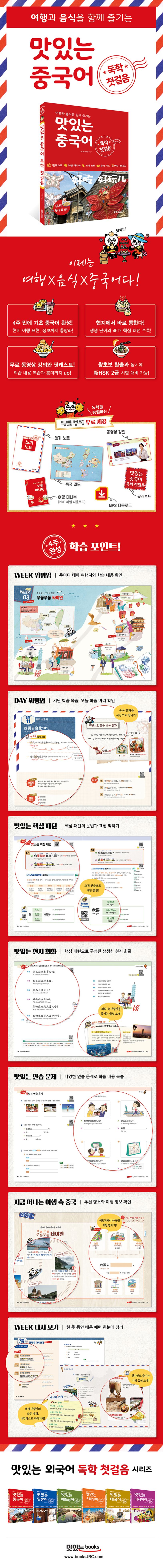 [맛있는 중국어 독학 첫걸음]은 ‘여행ⅹ음식ⅹ중국어’라는 흥미 있는 콘셉트로, 4주 동안 중화권 여행지에서 이루어지는 생생한 상황으로 구성한 4주 완성 독학 교재입니다.