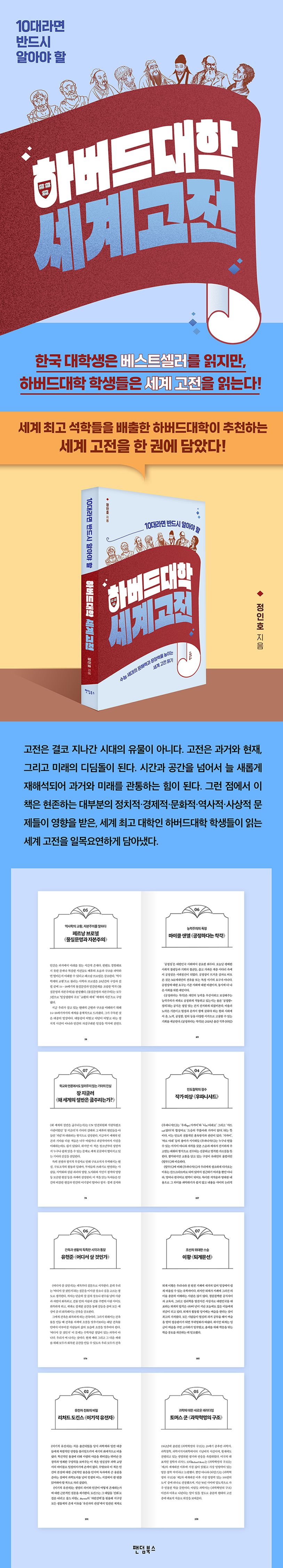 고전은 결코 지나간 시대의 유물이 아니다. 고전은 과거와 현재, 그리고 미래의 디딤돌이 된다. 시간과 공간을 넘어서 늘 새롭게 재해석되어 과거와 미래를 관통하는 힘이 된다. 그런 점에서 이 책은 현존하는 대부분의 정치적·경제적·문화적·역사적·사상적 문제들이 영향을 받은, 세계 최고 대학인 하버드대학 학생들이 읽는 세계고전을 일목요연하게 담아냈다.