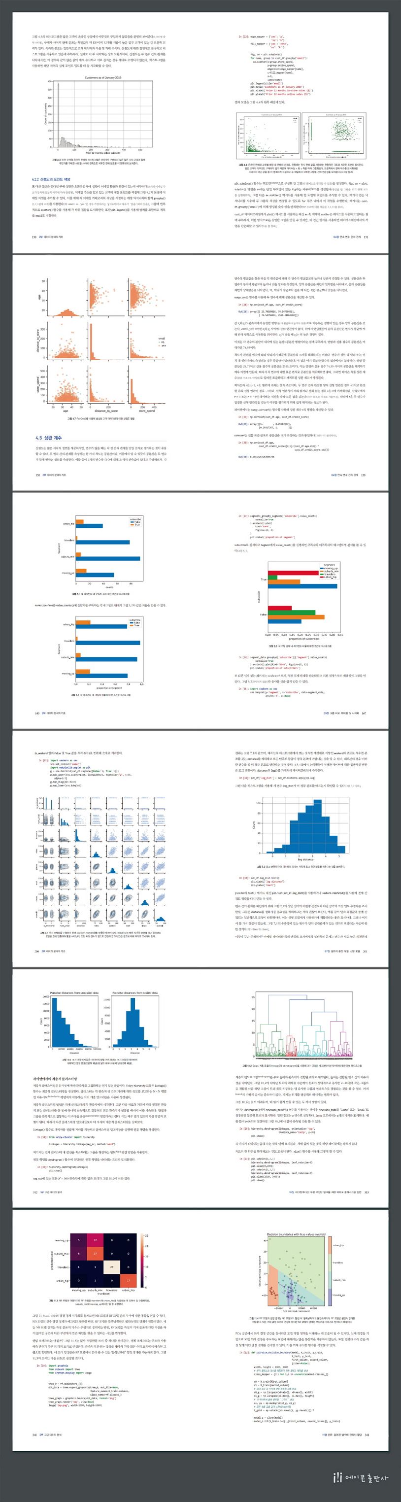 데이터 분석에서 가장 중요한 절차이자, 가장 기초적인 절차는 단연코 시각화이다. 책은 파이썬에 내장된 다양한 시각화 라이브러리를 사용해 데이터를 도식화하는 여러 기법을 설명해 준다. 이를 통해 마케팅이 아니더라도 데이터의 기본 시각화 방법에 대해 잘 알 수 있게 될 것이다. 통계적 검정 방법과 여러 선형 모델을 설명하지만 별도의 통계적 지식이 요구되지는 않는다는 점이 이 책의 큰 장점 중 하나다. 선형 모델 중 다변인 선형회귀도 살펴보며 계층적 모델까지 친절히 설명하고, 데이터 후반부는 차원축소에 연계돼 데이터 분석의 단순화 및 클러스터링을 집중적으로 살펴본다.