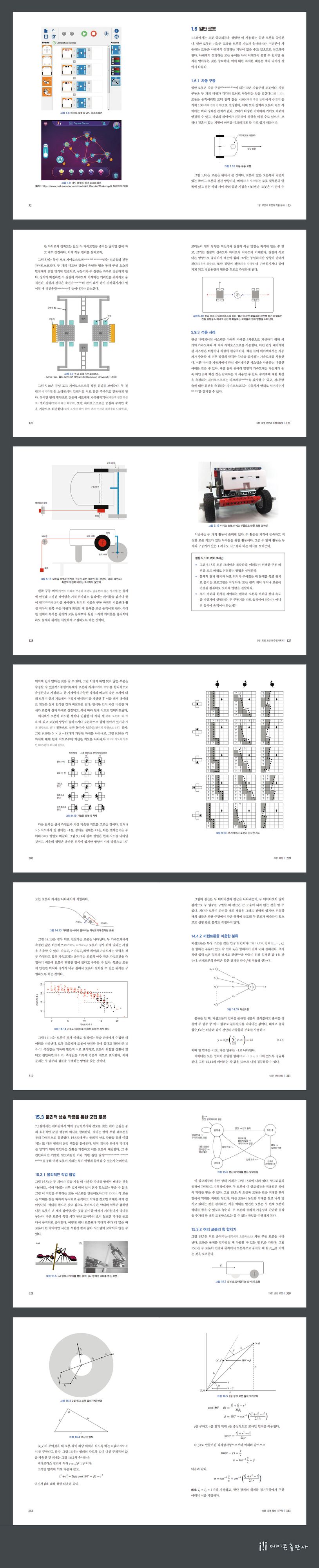 중고등학생과 대학교 1학년을 대상으로 로봇 알고리듬과 로봇 알고리듬에 대한 수학적, 물리적 원리를 중점적으로 다룬다. 초반부에서는 자율 모바일 로봇의 기초 개념인 센서, 반응성 동작, 유한 상태 기계, 모션과 주행기록계, 제어에 대해 설명하고 후반부에서는 장애물 회피, 로컬화, 매핑, 퍼지 논리, 이미지 처리, 인공 신경망, 머신러닝, 군집 로봇, 로봇 팔의 기구학 등 심화된 로봇 알고리듬을 설명한다. 또한 알고리듬을 실제로 교육용 로봇에서 구현하도록 100개 이상의 활동을 제공한다.