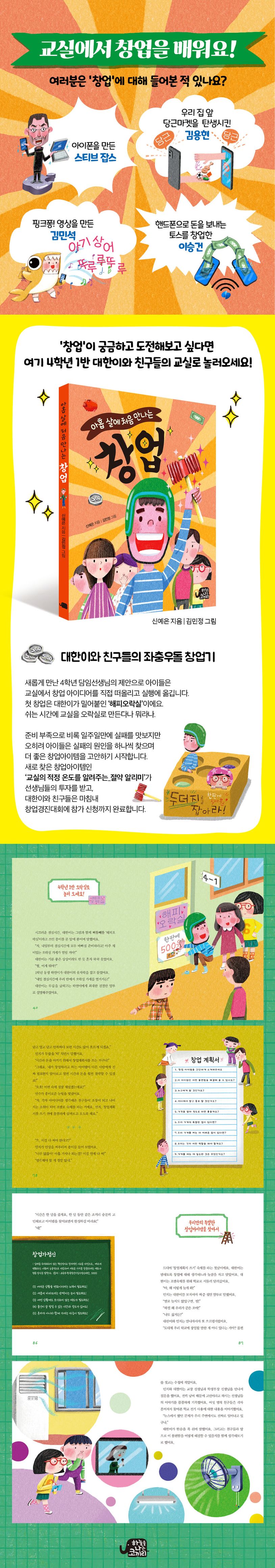 2015년부터 매년 ‘대한민국 청소년 창업경진대회’가 열리고 있고, 초등학생 참가팀도 본선에 진출하는 일이 늘고 있답니다. 이 책으로 스티브 잡스보다 더 멋지고 재미있는 아이디어로 세상을 깜짝 놀라게 할 ‘예비 창업가’가 되어 보면 어떨까요?
