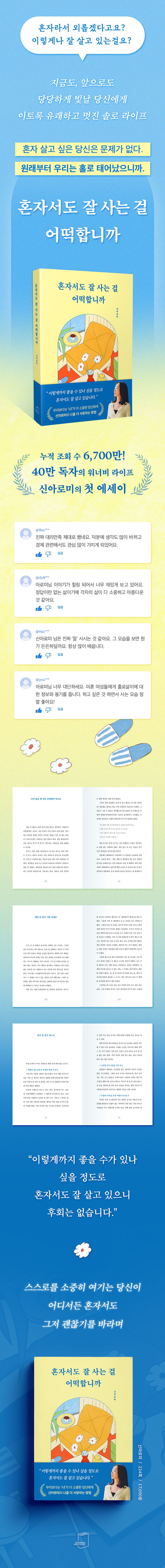 어느 날 혼자인 게 걱정되고 외롭다고 느껴질 때, 이 책을 펼쳐 봤으면 좋겠다.