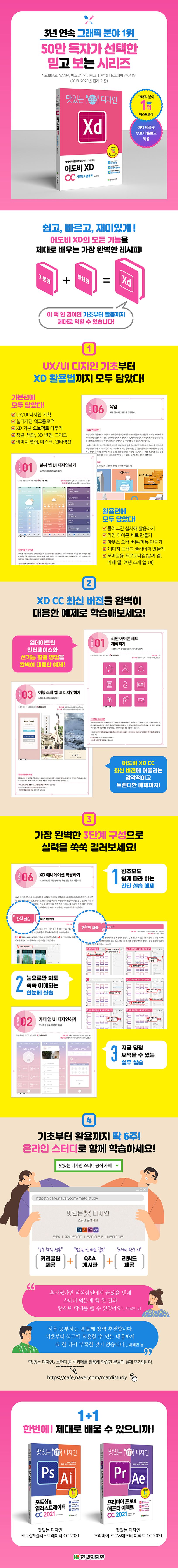 웹디자인에 꼭 필요한 UX/UI 디자인 기초 이론부터 프로토타입 제작 도구인 XD 활용법까지 제대로 배울 수 있습니다. UX/UI 디자인 기획과 웹디자인 워크플로우를 먼저 이해한 후 XD의 기본&핵심 기능을 익혀 다양한 실무 활용 예제로 프로토타입을 직접 제작해봅니다. XD 최신 버전에 완벽히 대응하였으며, 기본 기능과 활용법을 완벽하게 마스터할 수 있는 3단계 학습 방법인 [기능 실습] - [한눈에 실습] - [실무 실습]의 구성은 누구나 XD를 제대로 배워 바로 써먹을 수 있도록 도와줍니다. 이 책 한 권이면 예비 웹디자이너가 필요한 것을 모두 학습할 수 있습니다.