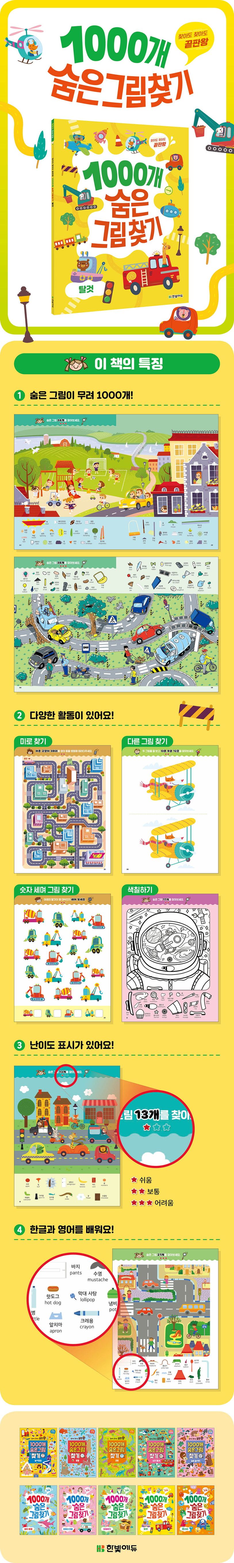 시리즈와 함께하세요. 신나는 숨은그림찾기가 무려 1,000개! 아쉬움 없이 넉넉한 분량으로 시간 가는 줄 모르고 즐길 수 있어요. 아이 혼자 놀아도 좋고, 가족과 친구와 머리 맞대고 놀기에도 좋은 재미난 책이랍니다.