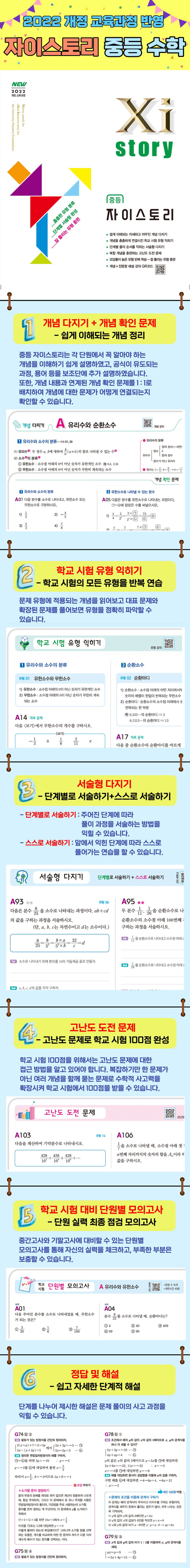 - 자이스토리는 개념과 연계된 개념 확인 문제를 1 : 1로 배치하여 개념이 쉽게 이해되도록 하였습니다.